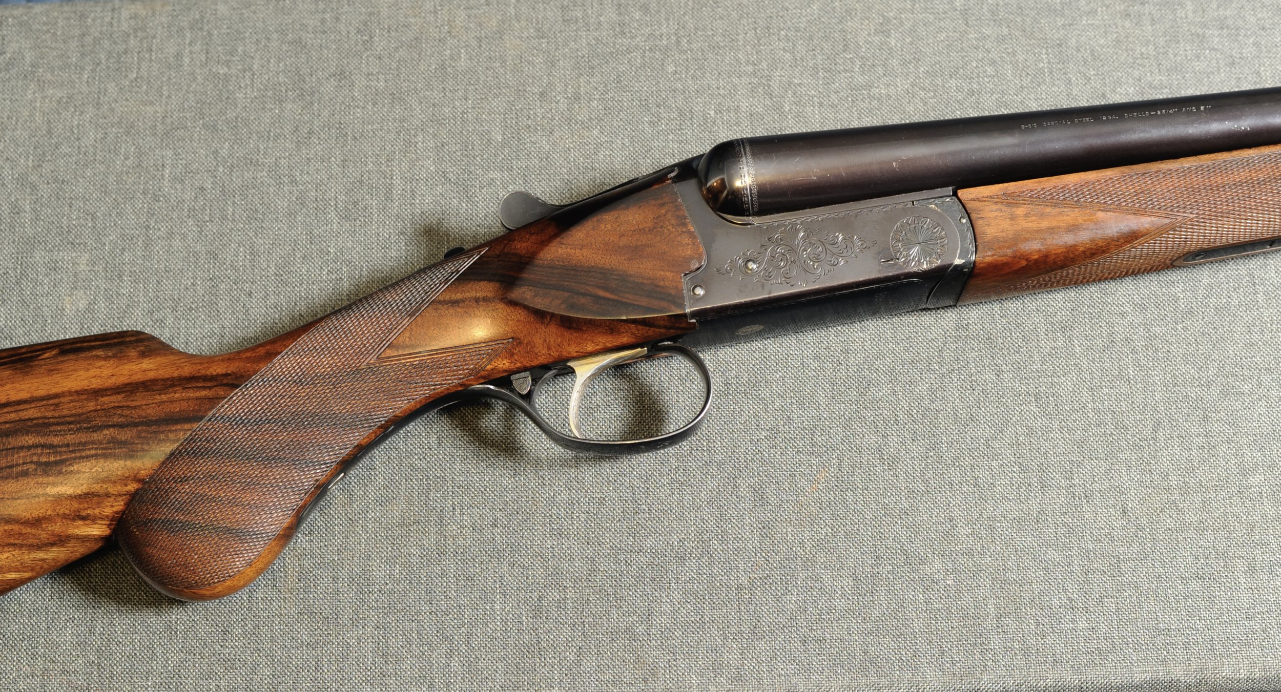 Bygget som en “pigeon gun”, dvs. for aktiv bruk på lerduebane eller til jakt med tyngre ladninger, selvsagt også stål. B/SS-mekanismen tåler det aller meste. Svært velholdt våpen med ekte London Best-finish på treverket.